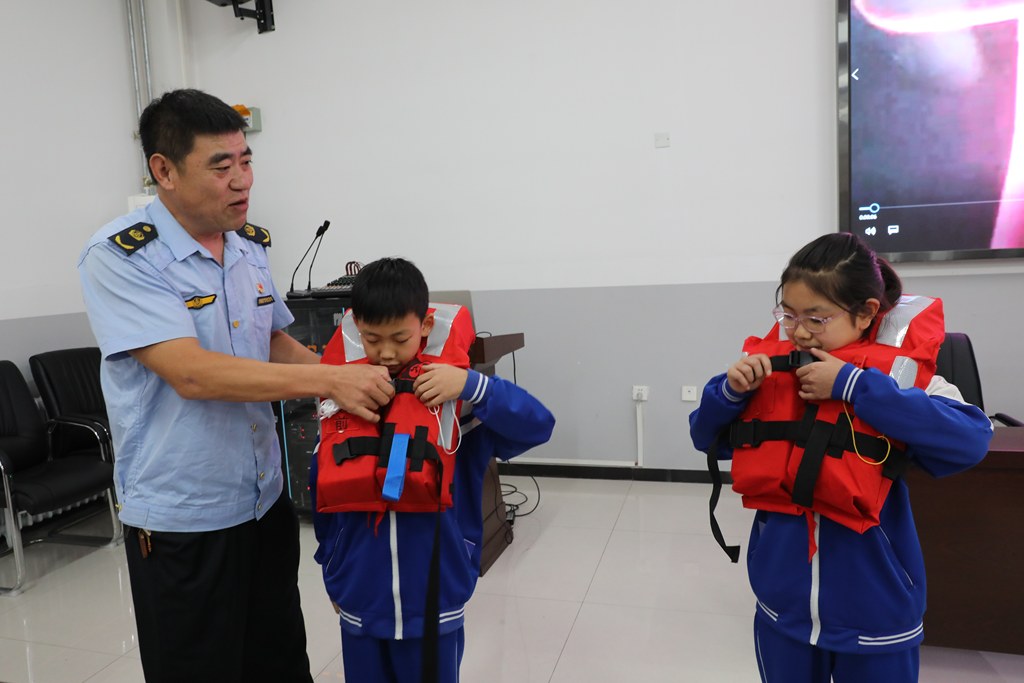 此外,工作人员还向同学们发放了水上安全知识宣传手册,呼吁他们不仅要自己学好水上交通安全知识,还要回去向家长们进行宣传,争做小小宣传员。