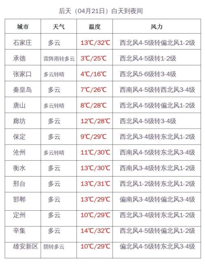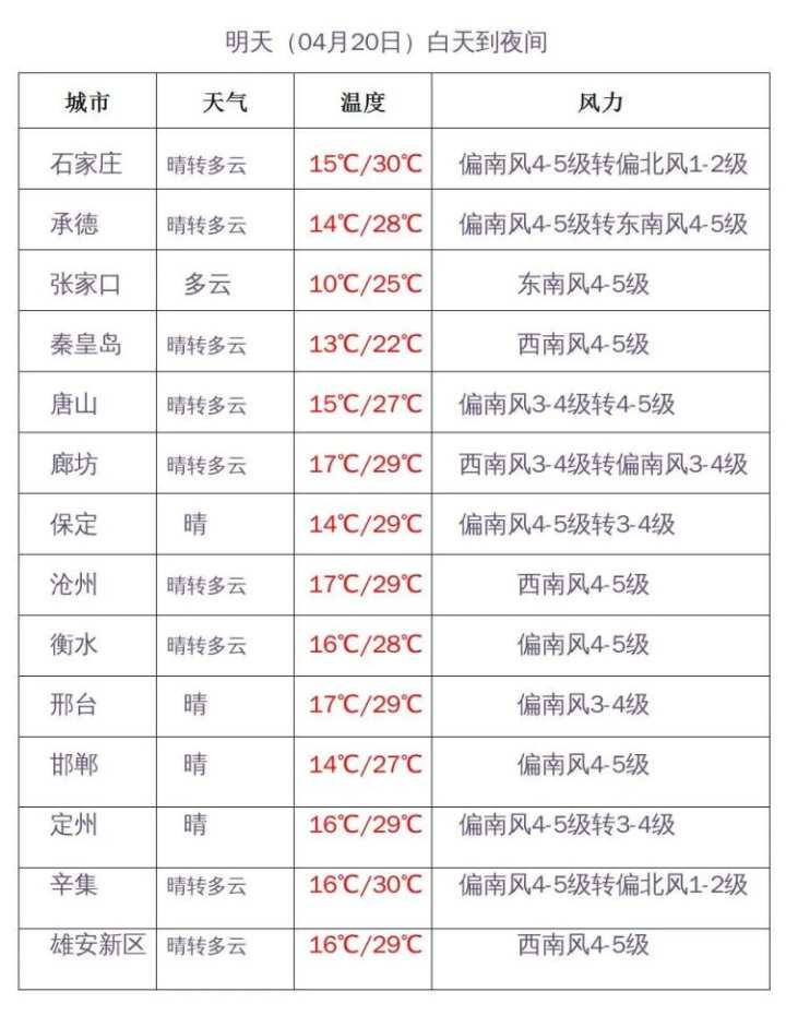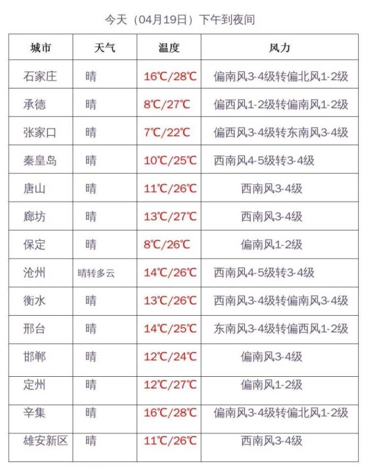 预报来源:河北省气象台2022年4月19日11时预报
