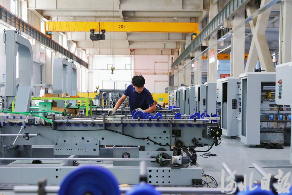 9月17日,在玉田智能装备制造(印机)产业综合体(以下简称“综合体”),摩盛智能设备(唐山)有限公司正加紧为山东、云南等地的客户生产钉箱机等设备。