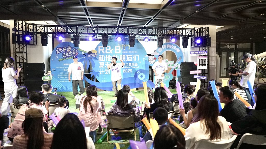 音乐演出环节,悦容音乐志愿小队通过串烧歌曲燃动全场,《手心的蔷薇》等20余首经典歌曲轮番上演,引发观众大合唱。该活动还特别设置体育快闪体验区、一卡通办理站点、社区资源枢纽站等青年友好场景,以及10余个青年文创主题摊位,通过“音乐+体育+志愿”的创新形式,激发青年情感共鸣。该活动吸引了800余名群众现场参与,并进行了线上直播。