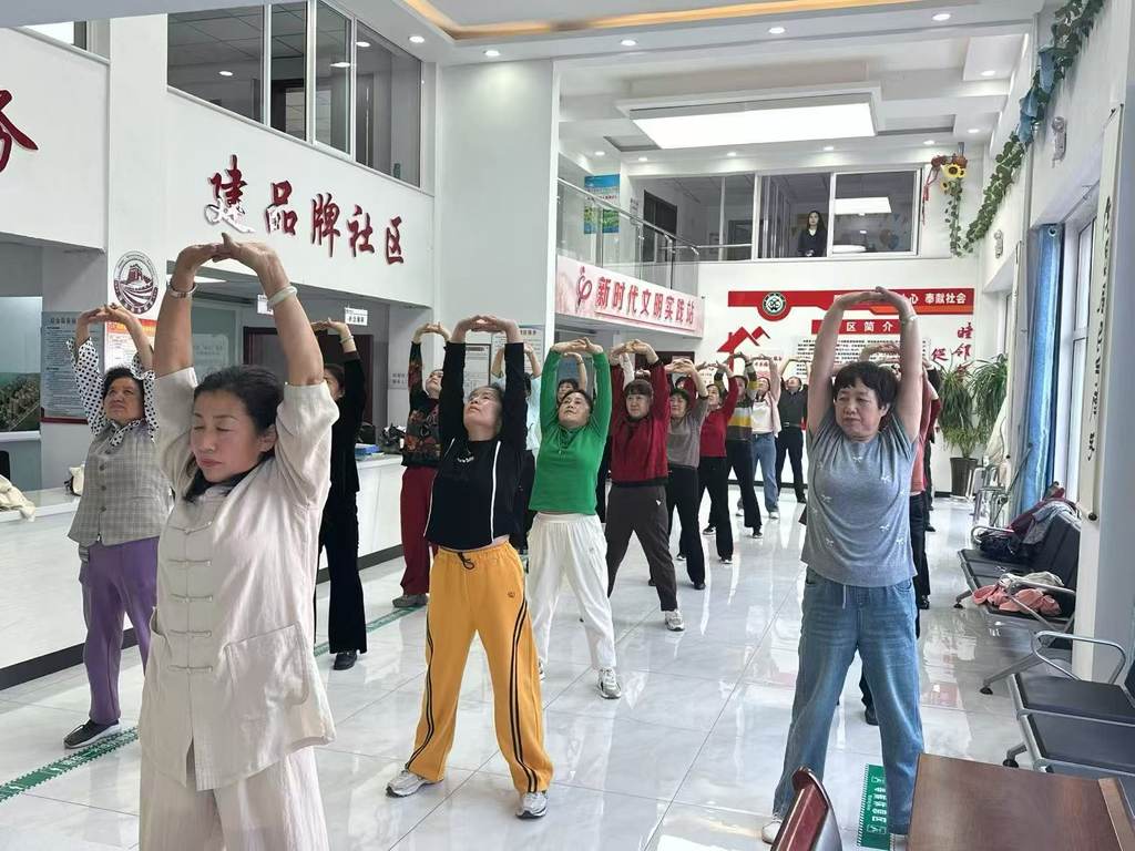 随后,老师为现场妇女们进行八段锦细致讲解和动作示范。介绍了八段锦的历史渊源、健身功效和练习要点。在场妇女们学习热情高涨,认真模仿练习,用心体会着传统养生功法带来的身心放松与和谐。现场气氛热烈而有序,展现了新时代妇女积极向上的精神风貌。