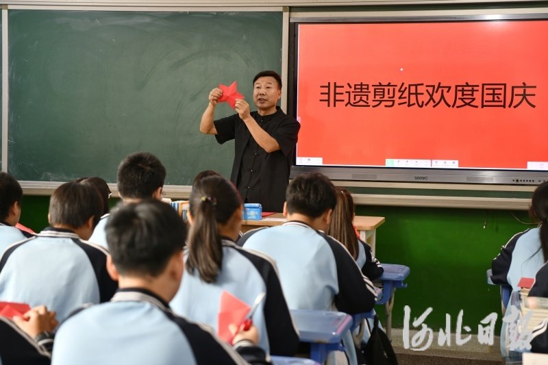 厚植爱国主义情怀,传承优秀传统文化。9月25日,河北省迁安市杨店子街道初级中学开展“欢度国庆、浓情中秋”非遗剪纸进校园活动。