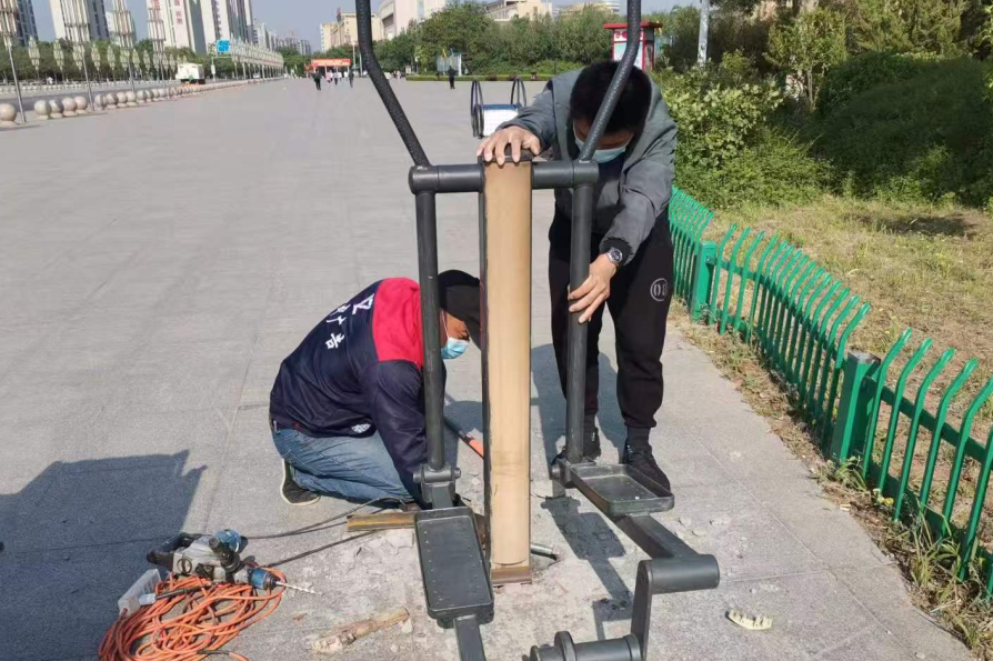 公园广场设施提升,更换园灯、健身游乐设施,绿植修剪、园路保洁。