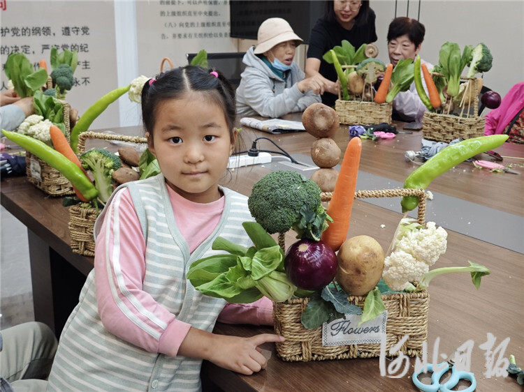 河北日报客户端讯(钟蕾)9月23日中国农民丰收节当天,石家庄高新区长江街道润丰盛世家园社区举办蔬菜插花活动,以创意形式让居民感受丰收喜悦。