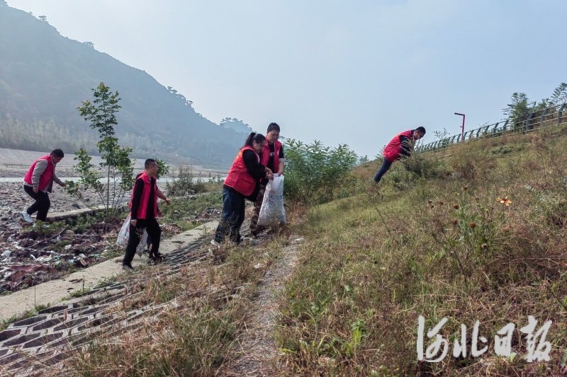 河北日报客户端讯(李海侠、赵志鹏)金秋时节,河清岸净正当时。近日,河北省迁西县东荒峪镇组织20余名志愿者开展河道环境卫生整治行动,以志愿红激活生态绿,筑牢水域生态防护线。