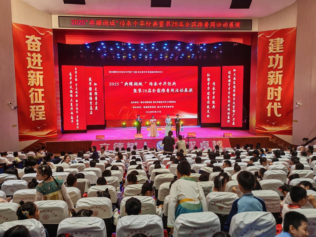 金秋送爽,丹桂飘香。9月27日,2025“典耀湖城”传承中华经典暨全国第28届推广普通话宣传周活动展演在衡水中学实验学校博艺馆成功举行。本次活动由衡水市教育局、衡水市语言文字工作委员会联合桃城区教育局、衡水高新区、滨湖新区公共事业服务局及市直学校共同举办,旨在深入推广国家通用语言文字,传承中华优秀传统文化,铸牢中华民族共同体意识。