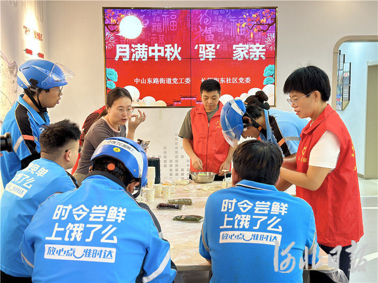 河北日报客户端讯(毛宇)中秋佳节将至,9月26日,石家庄市长安区中山东路街道党工委、河北省社会工作促进会联合街道慈善工作站、长征街东社区,在长安区新就业群体党群服务中心,开展“月满中秋‘驿’家亲”主题活动,邀请20余名外卖骑手参加。