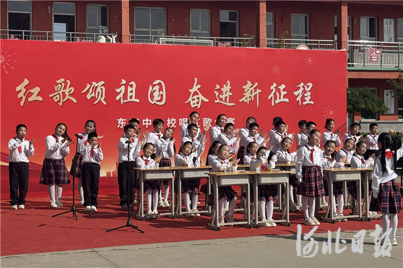 河北日报客户端讯(邢园园、袁仪珊)为庆祝中华人民共和国成立76周年,9月26日上午,晋州市晋州镇东宿学校、宿村学校、东张村学校的师生齐聚宿村学校操场,共同开展以“红歌颂祖国 奋进新征程”为主题的合唱活动,用嘹亮歌声为祖国献上诚挚祝福。