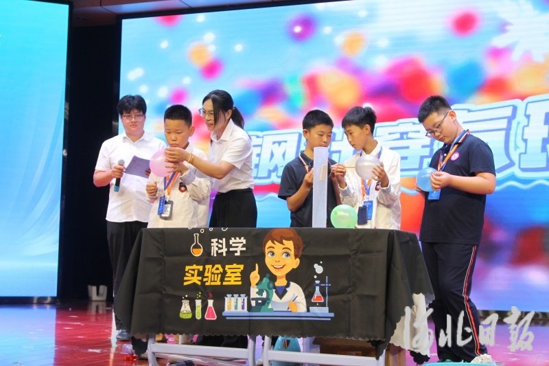竞赛开幕式现场,县职教中心与英才学校科技志愿服务队给大家带来了气体喷发、钢针穿气球、逆流而上等十余种精彩纷呈的物理秀表演,将深奥的科学原理化为直观有趣的互动表演,点燃了全场的科学热情。