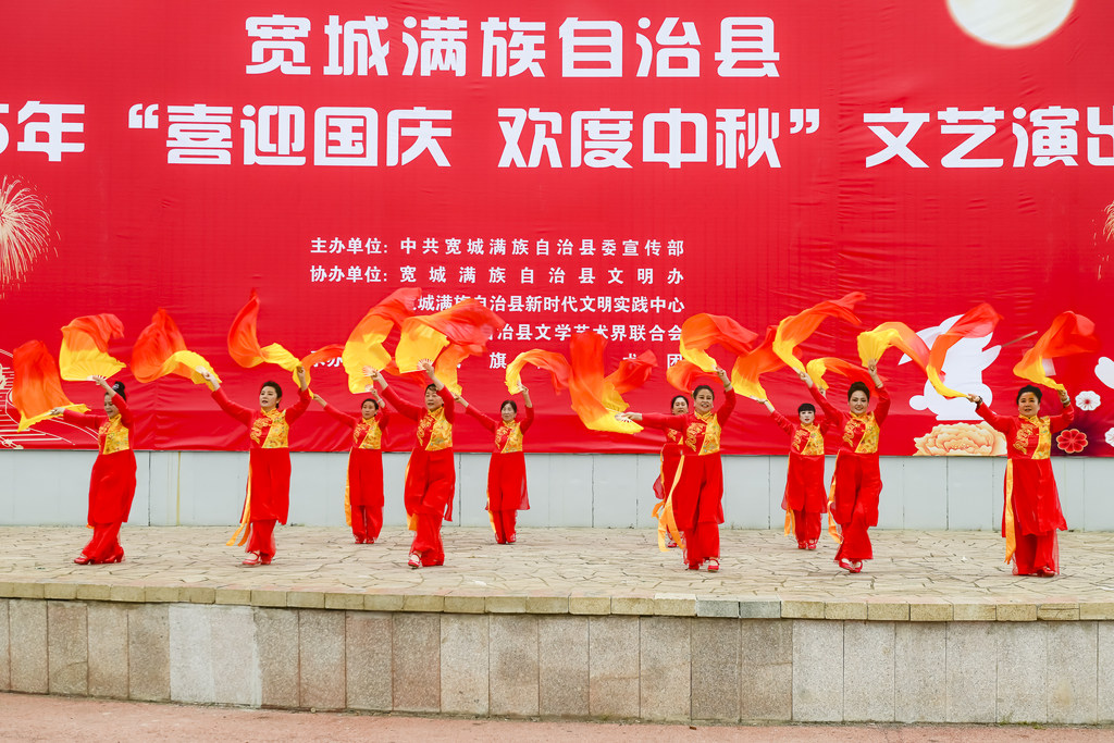 河北日报客户端讯(袁宝利、周轩名)9月27日,宽城满族自治县在劳动者大舞台举办2025年“喜迎国庆 欢度中秋”文艺演出。由该县委宣传部主办,县精神文明建设指导委员会办公室、县新时代文明实践中心、县文学艺术界联合会联合协办的活动,以载歌载舞的方式抒发家国情怀,营造出喜庆祥和的节日氛围。