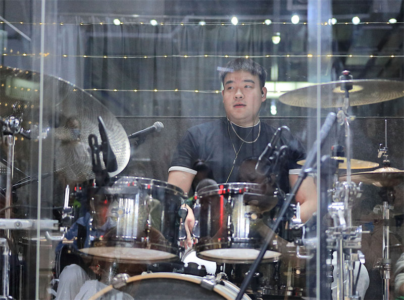 石家庄地平线摇滚俱乐部内传出阵阵鼓声