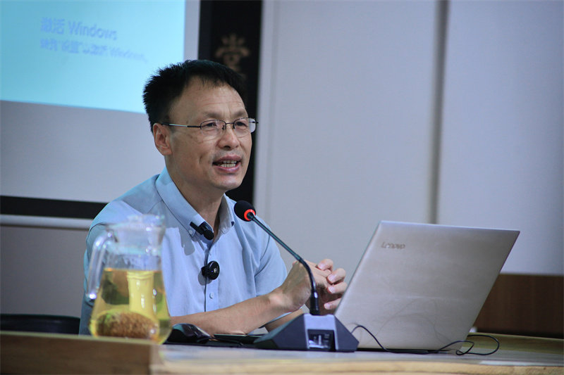 图为杜峦洲讲解对联特征。崔国柱摄