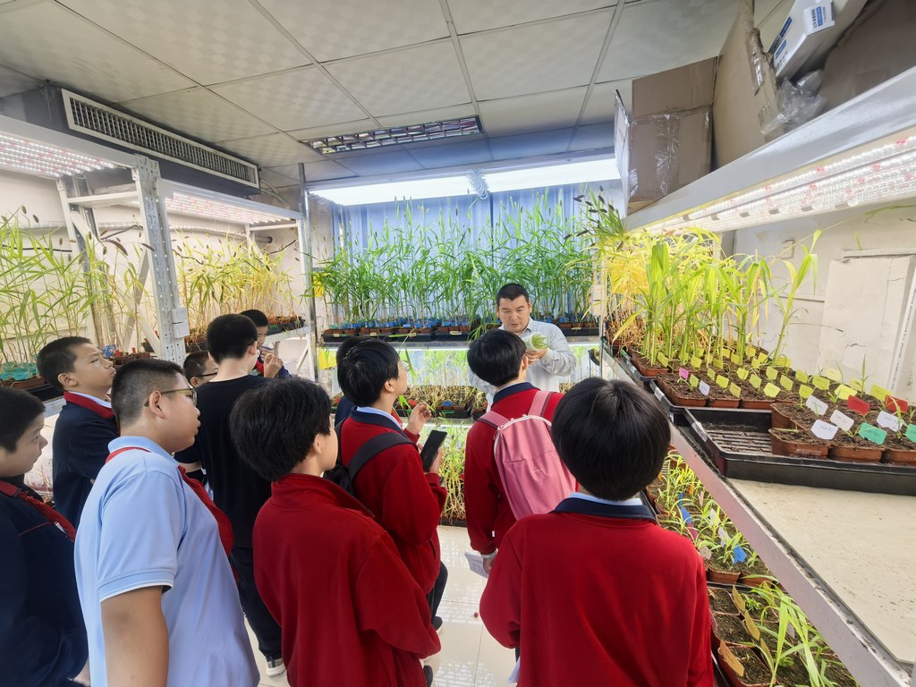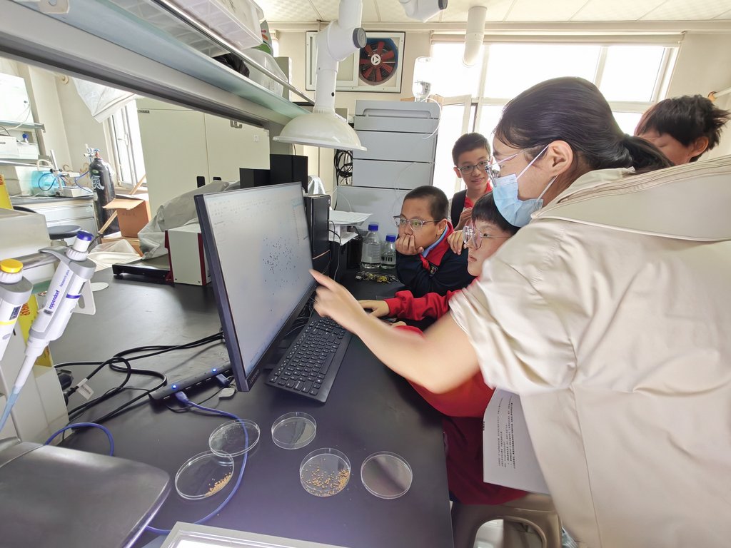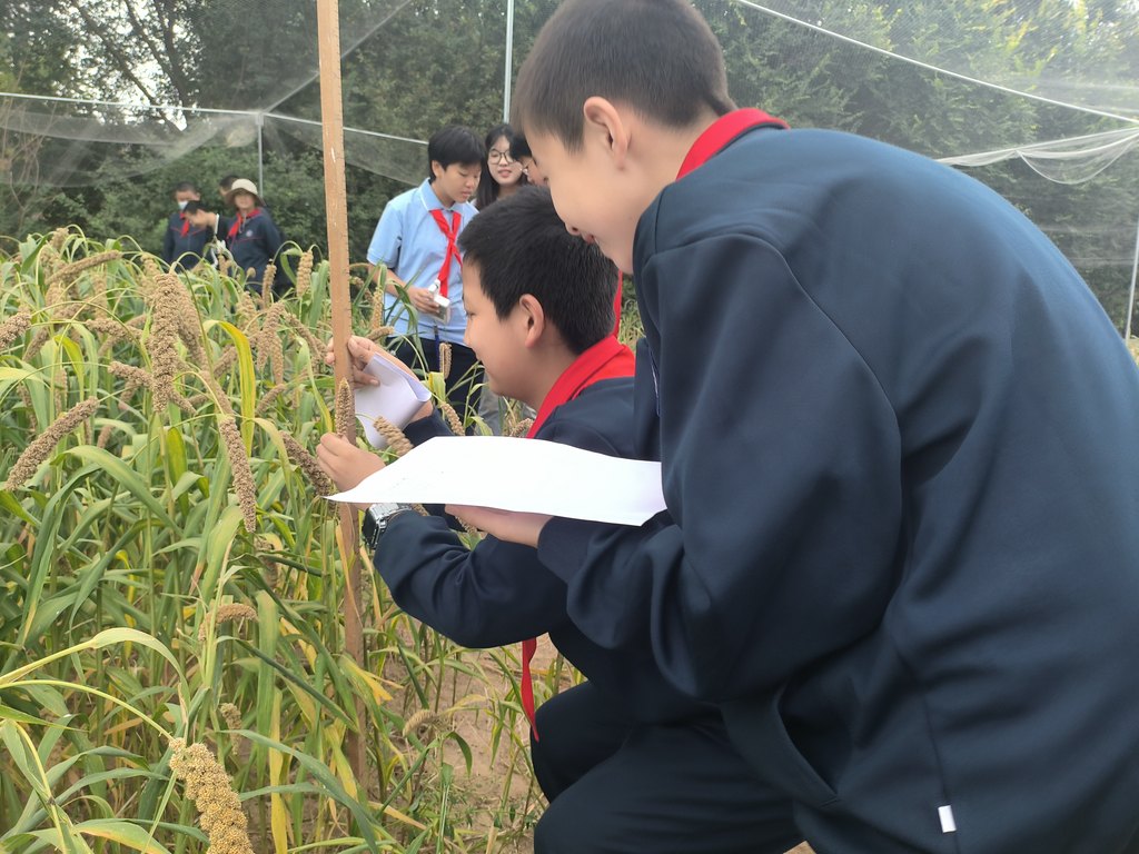 本次研学活动精心设计了四大实践环节,涵盖杂粮知识学习,展示田作物测量、千粒重计算以及基因编辑与显微镜微观观察。活动中,45名学生被分为4个小组,轮流参与各项实践任务,确保每位同学都能深度体验。在展室杂粮知识学习环节,谷子和杂粮杂豆团队专家详细介绍了杂粮的种类、籽粒辨识方法及营养用途,通过实物展示与讲解结合的方式,让学生们直观地掌握了杂粮知识;进入展示田作物测量环节,学生们亲手操作仪器,对谷子的株高、穗长进行精准测量,在实践中体会到仪器设备的严谨性与科学研究的真实性;千粒重计算环节则创新性地采用人工数粒与计算机数粒对比的方式,当学生们看到计算机数粒的高效与精准时,纷纷惊叹科技的强大力量;而在基因编辑实验室,通过对比实验,展示了基因重组技术培育出的谷子在特征上的前后变化,随后学生们通过显微镜近距离观察谷子微观结构,进一步加深了对科学技术的认知。