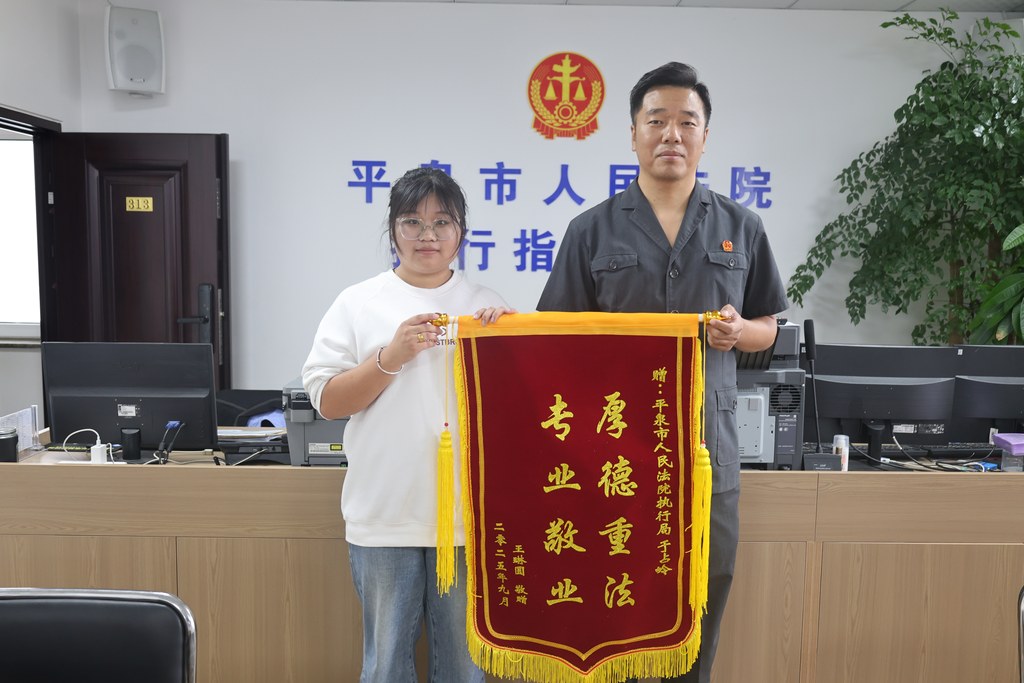 河北日报客户端讯(于占岭)近日,平泉市人民法院执行局凭借高效且兼顾各方权益的执行举措,成功化解一起劳动争议纠纷,当事人满怀感激送来锦旗。