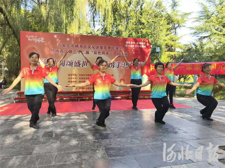 河北日报客户端讯(张兴兴)9月26日上午,由石家庄市桥西区红旗街道新石南一社区承办的石家庄市桥西区文化进基层惠民演出暨桥西区第32届“彩色周末”文化活动,在石刻园广场举办。本次活动通过民乐、合唱、舞蹈等多元艺术形式,弘扬传统文化,凝聚社区力量。