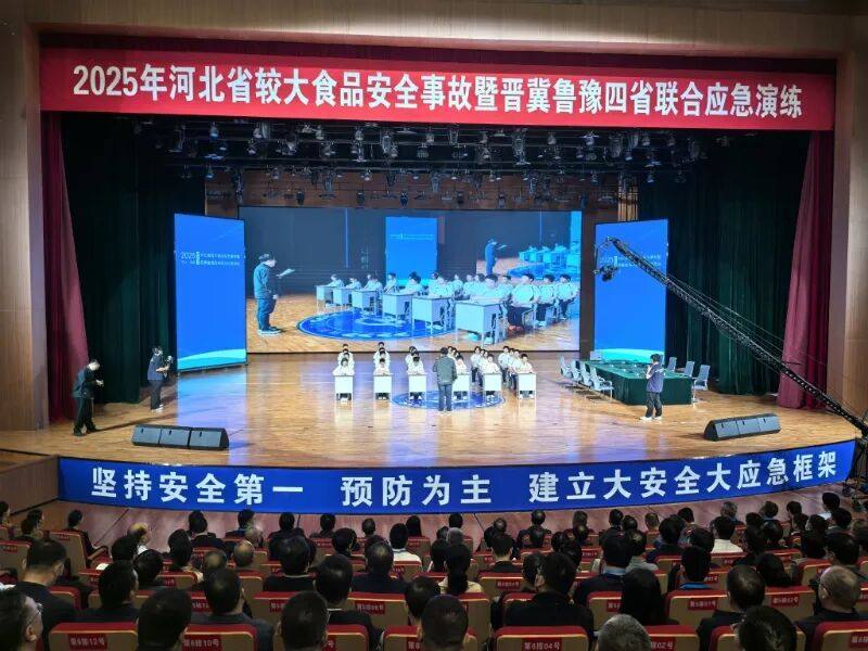 9月23日上午,由河北省市场监管局、邯郸市人民政府主办,邯郸市市场监管局、大名县人民政府承办,山西省长治,山东省聊城、菏泽,河南省安阳、濮阳四省五市市场监管局协办的“2025年河北省较大食品安全事故暨晋冀鲁豫四省联合应急演练”在邯郸市大名县举办。
