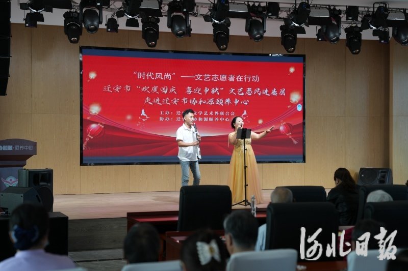 河北日报客户端讯(张泽慧、祁利敏)国庆、中秋“双节”来临之际,9月29日,河北省迁安市文联组织文艺志愿者走进协和园颐养中心,开展“时代风尚——文艺志愿者在行动 喜迎中秋・欢度国庆”文艺惠民活动。