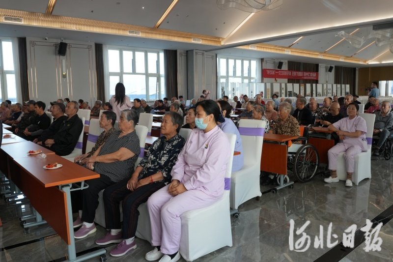 图为老人们在护理人员的陪同下观看文艺演出。张泽慧摄