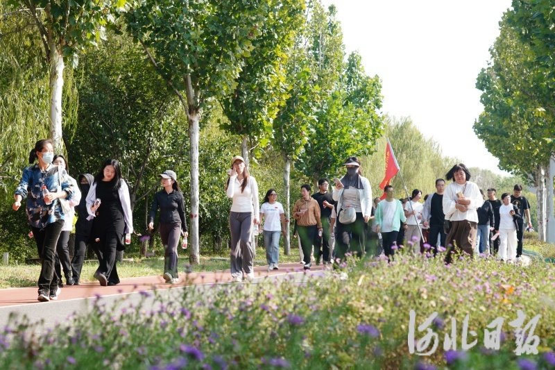9月29日,唐山市开平区区直机关工作委员会、文化广电和旅游局在唐山花海南区举办“勇于担当·携手奋进”迎国庆健步走活动。