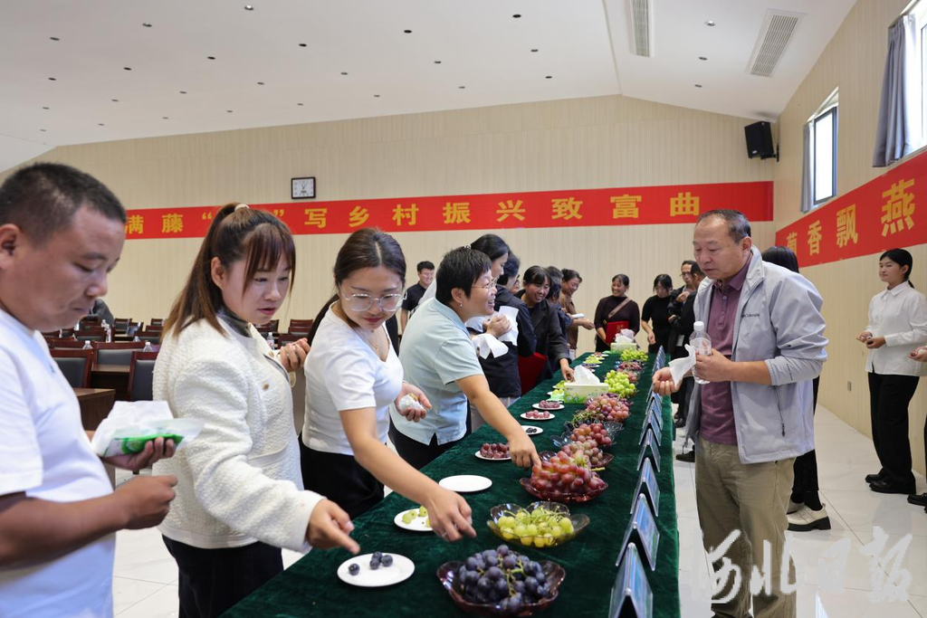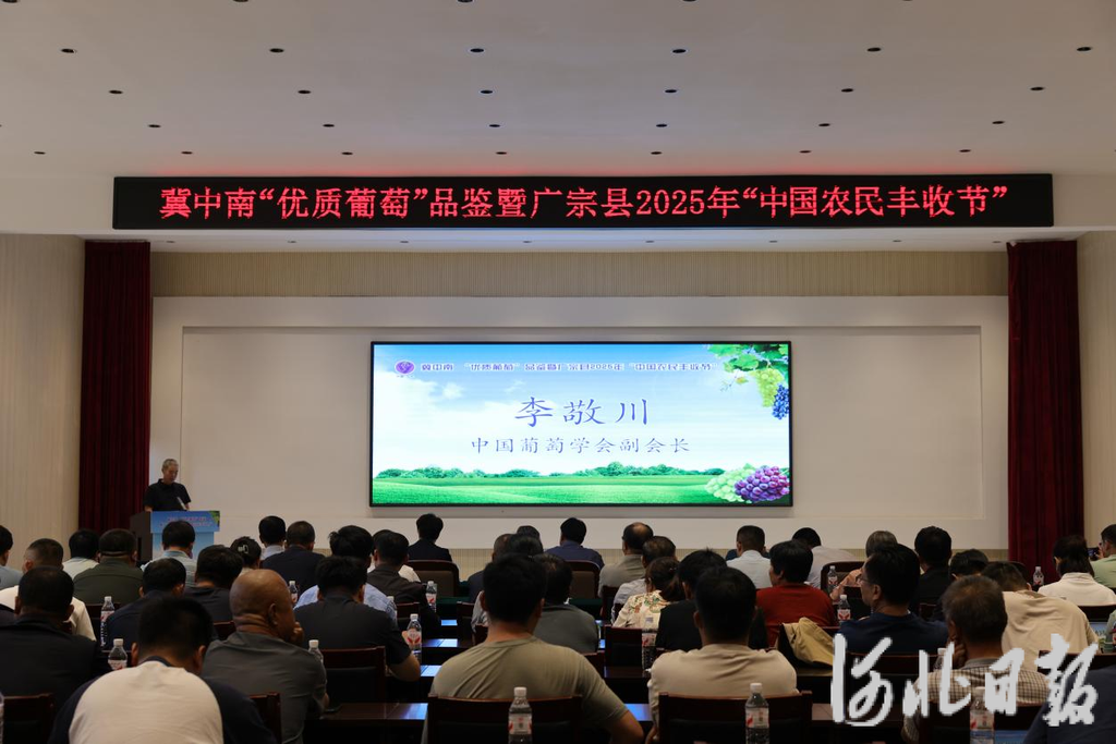 河北日报客户端讯(葛永乐、张俊贤)9月24日至25日,邢台市广宗县举办主题为“葡萄风情 多彩广宗”的冀中南优质葡萄品鉴暨2025年中国农民丰收节活动,来自各地的葡萄种植大户、客商及专家学者共计100余人参加。果农们拿出精心挑选的18个品种、56件葡萄样品同台争“鲜”竞“美”,交流经验的同时共享丰收喜悦。