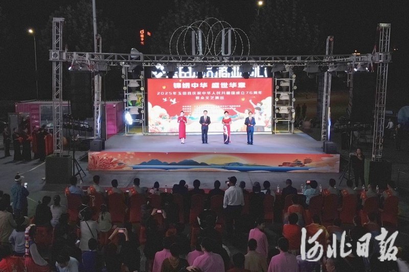 河北日报客户端讯(叶剑宇、张萌)9月30日,由玉田县委宣传部、县文化广电和旅游局主办的“锦绣中华 盛世华章”——2025年玉田县庆祝中华人民共和国成立76周年群众文艺演出在玉田县商业中心开演。