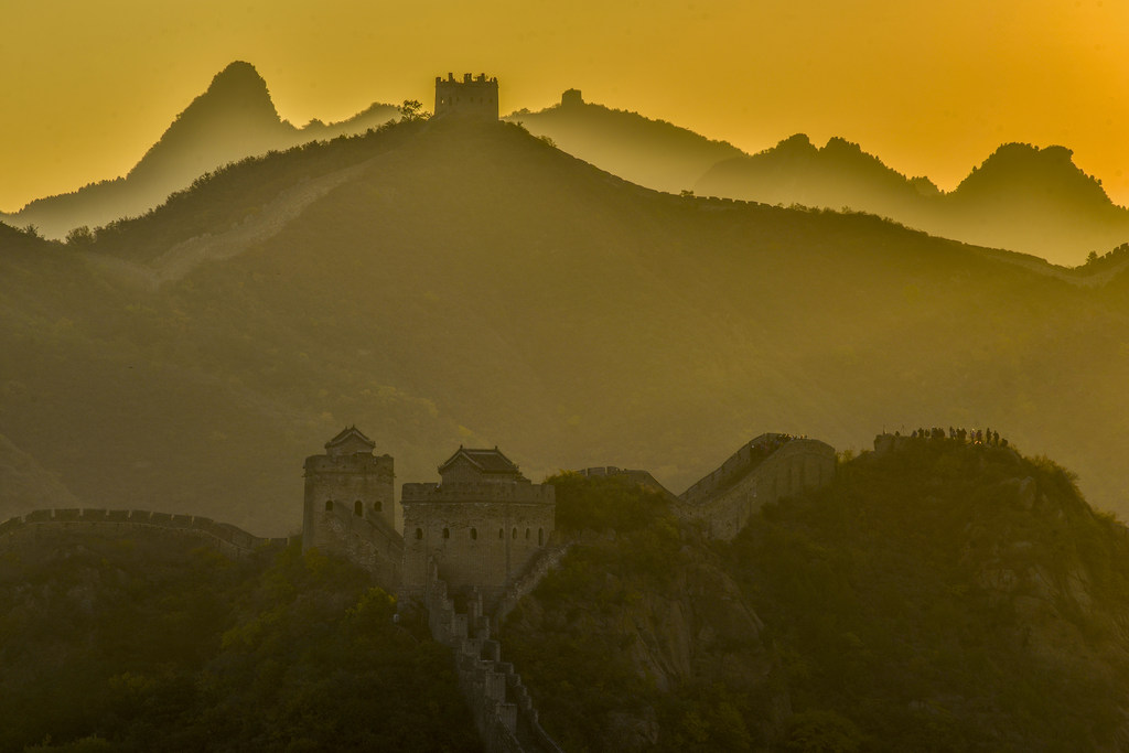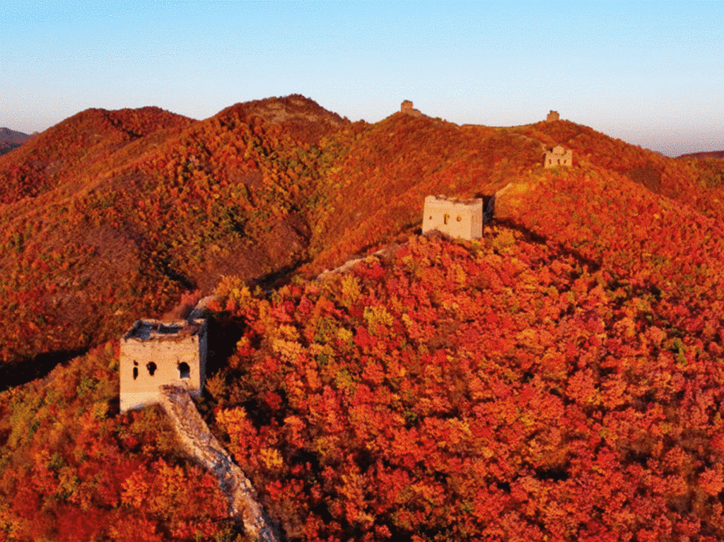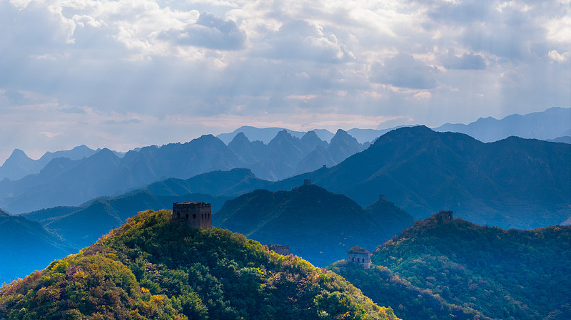 10月1日,游客在河北承德金山岭长城登高远眺,遥望群峰。图片来源:央视新闻