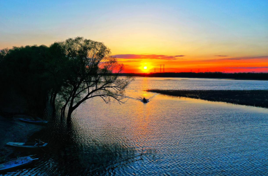 渔舟唱晚。(张立强摄于潴龙河蠡县段)