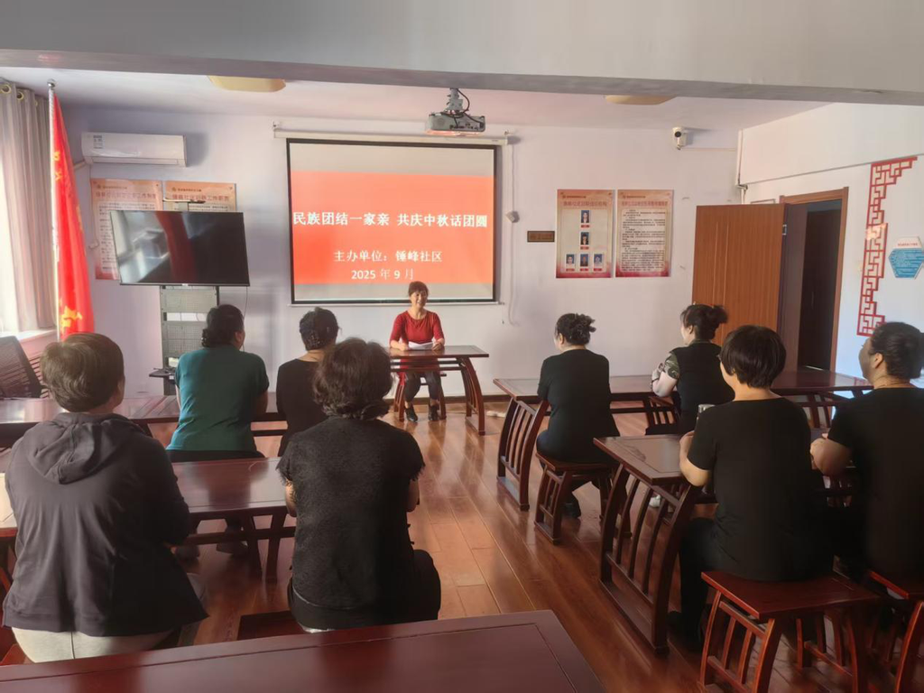 锤峰社区开展中秋宣讲活动。活动中,宣讲人以PPT为载体,图文并茂地展示了中华民族悠久而灿烂的文化,以及各民族之间和睦相处、相互支持的动人故事,赢得了现场阵阵掌声,进一步增强了大家的民族自豪感和认同感。