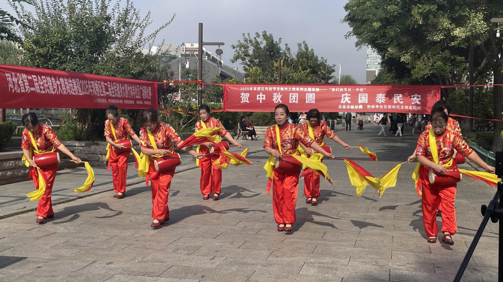 中华路街道竹林寺社区开展中秋歌舞演出。演出先是以健身腰鼓开场带动全场气氛;女声独唱《祖国啊,我永远热爱你》激发了居民们的爱国情怀;小合唱《今天是你的生日》更是把演出氛围推向高潮;最后以大合唱《祝福祖国》为演出画上圆满的句号。