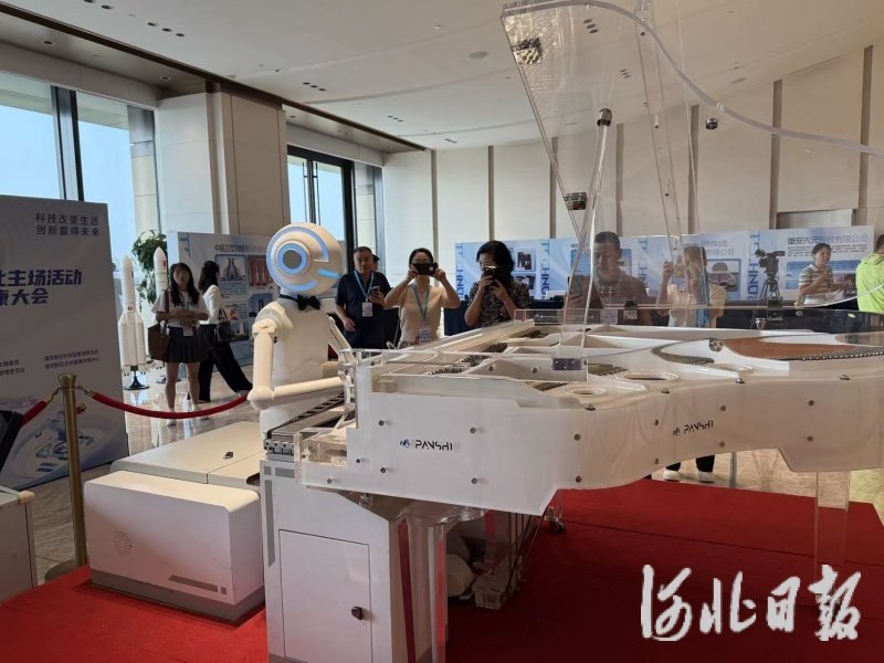 主场活动现场机器人弹奏钢琴。