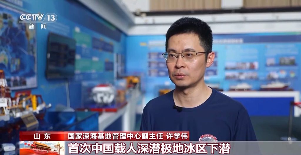 国家深海基地管理中心副主任 许学伟:此次“蛟龙”号实现首次中国载人深潜极地冰区下潜,将中国载人深潜由“全海深”向“全海域”突破,代表我国深海进入、深海探测的科技实力不断提升。