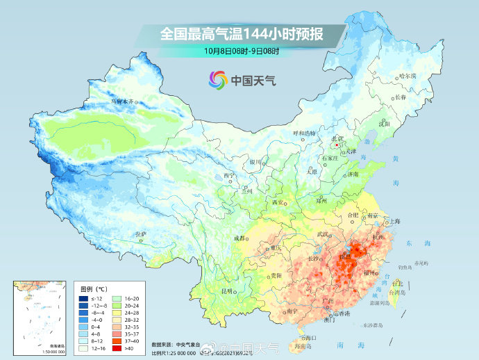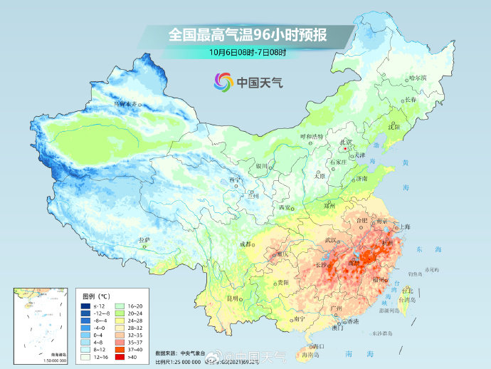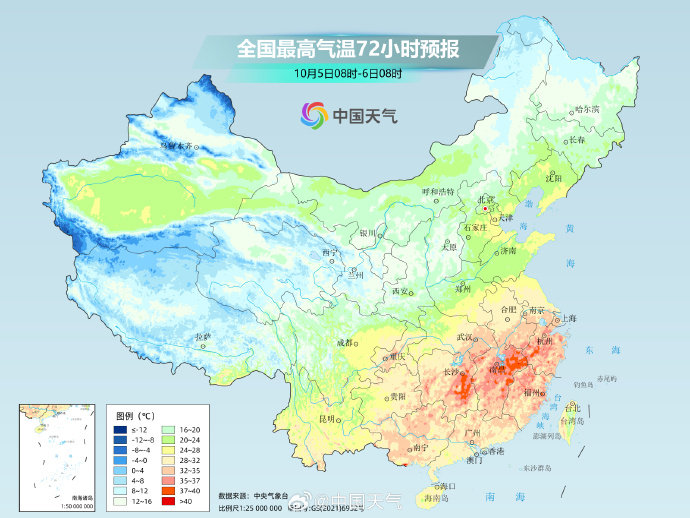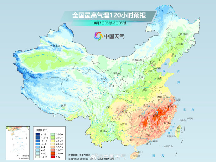 而在南方,江南、华南炎热持续,热得同期少见。假期期间,长江中下游及其以南大部地区最高气温将维持在30℃或以上,江南中东部、华南东部等地部分地区还有35至38℃的高温天气,江南局地气温将接近历史同期极值。不仅白天热,江南、华南多地最低气温也可达25℃或以上,较常年同期明显偏高,公众需持续注意防暑。