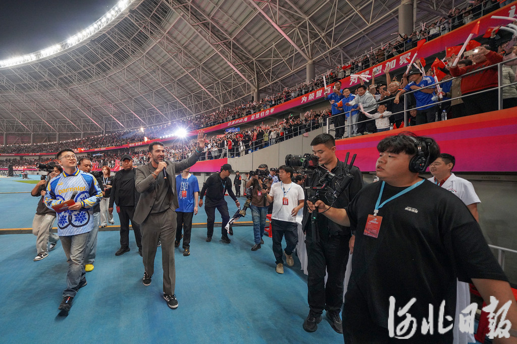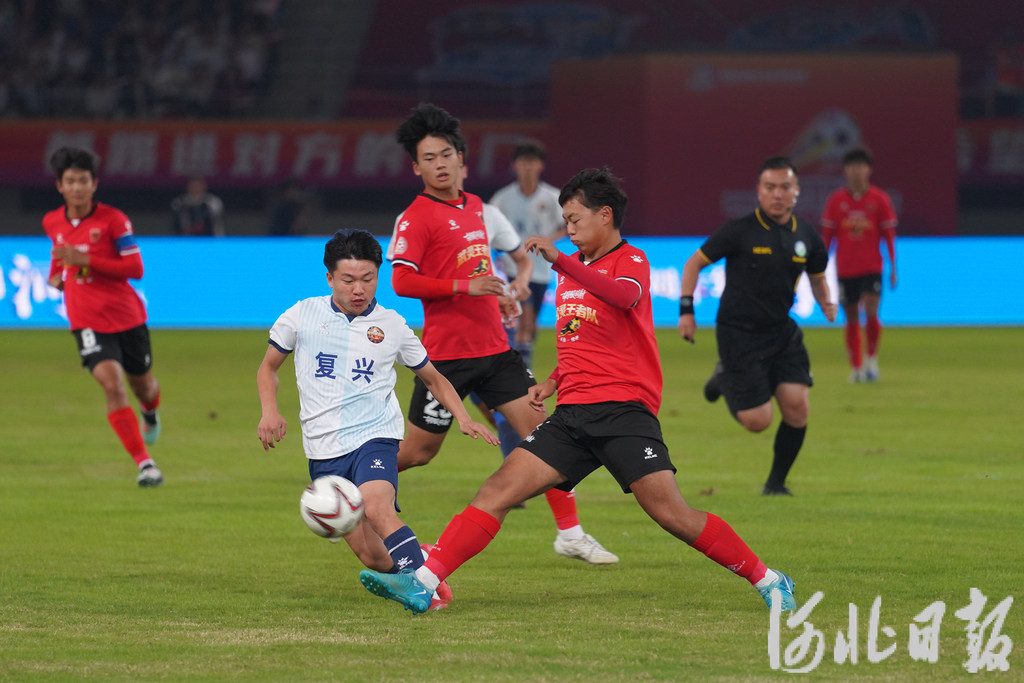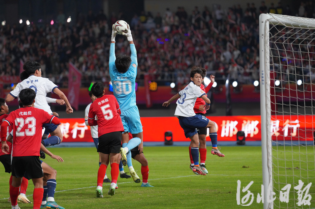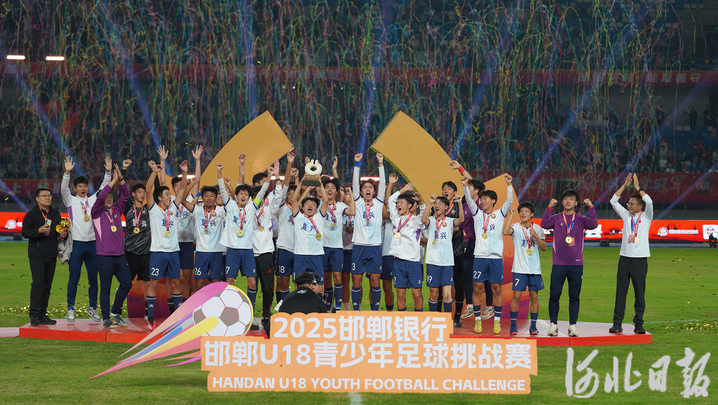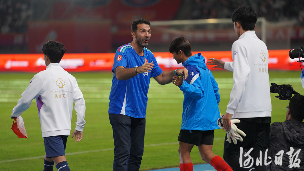 10月2日晚,邯郸U18青少年足球挑战赛(简称“郸青超”)决赛暨闭幕式在市体育中心举行。最终复兴钢焰队以1:0战胜丛台武灵王者队,夺得冠军。意大利足坛传奇门将布冯现场助阵并为冠军球队颁发奖杯。河北日报记者董源摄影报道