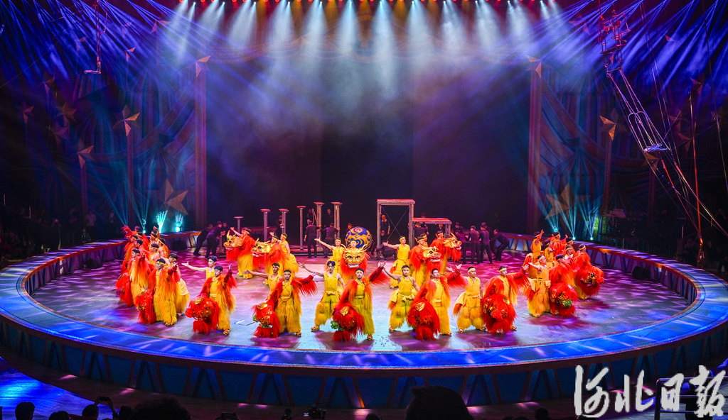 10月3日,在吴桥杂技节闭幕演出中,《祥狮跃九州》精彩上演。河北日报记者 李东宇摄