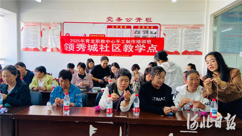 河北日报客户端讯(陈晓蕾、张久秘)近日,秦皇岛市青龙满族自治县职教中心联合都阳路街道办领秀城社区开展妇女手工毛线钩织培训活动,特邀满族传统手工毛线钩织技艺传承人张晓芳现场授课,为辖区妇女送上实用技能“大礼包”,以技能培训激活就业新路径。