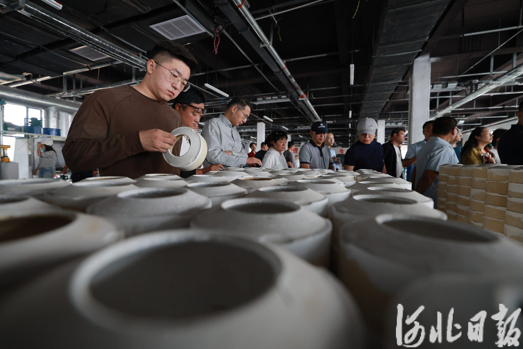 10月1日,游客在内丘县邢瓷产学研基地参观。刘继东摄