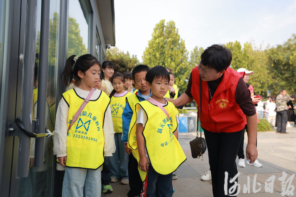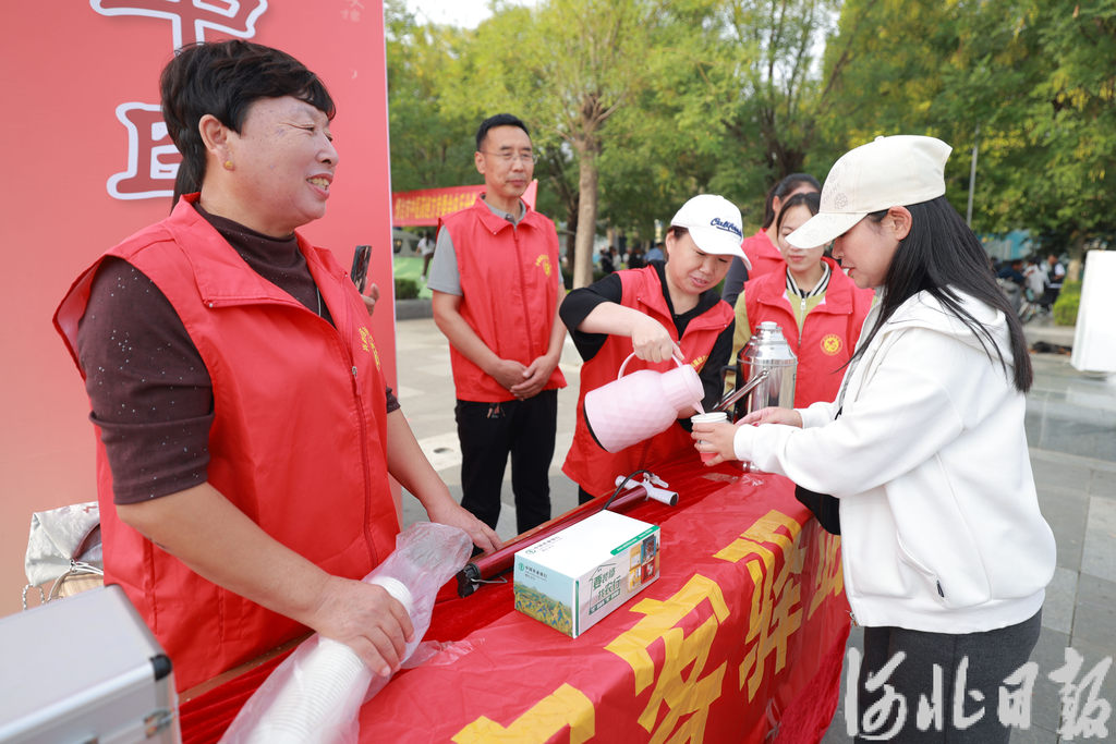 10月4日,志愿者在内丘县邢窑博物馆广场给游客提供暖心服务。刘继东摄