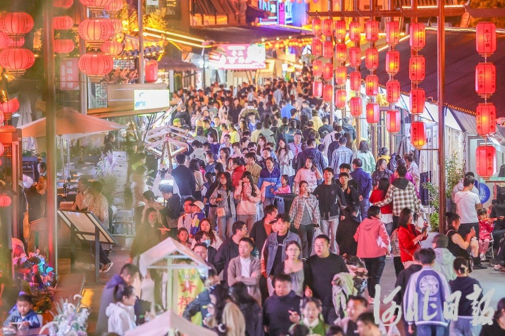 10月6日晚,游客在秦皇岛市海港区秦皇小巷参观游玩。河北日报记者赵杰摄