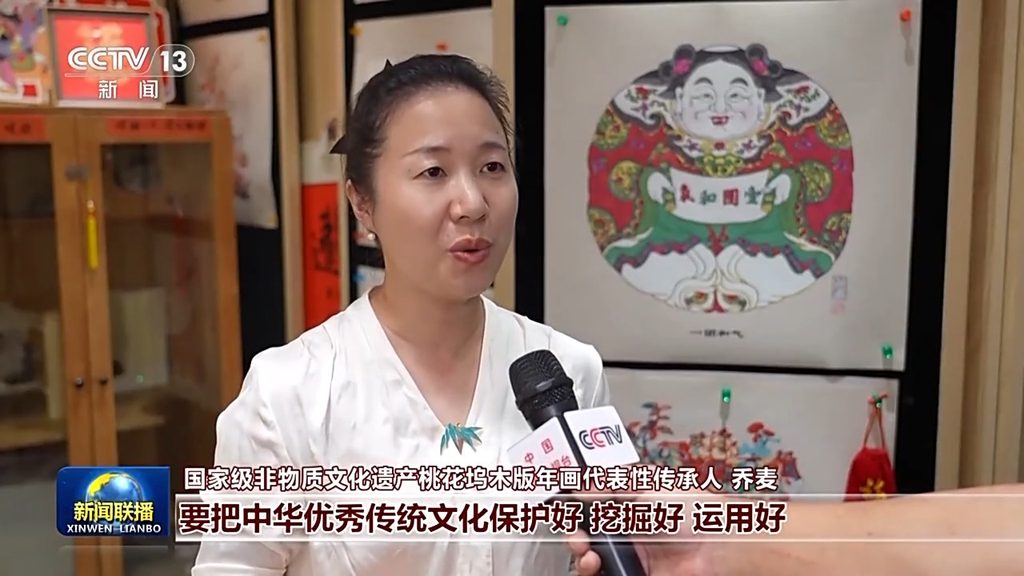 国家级非物质文化遗产桃花坞木版年画代表性传承人 乔麦:总书记嘱托我们要把中华优秀传统文化保护好、挖掘好、运用好。我们现在每逢重要传统节日就会推出对应的民俗活动,让大家能够更好地传承感知我们的传统文化。