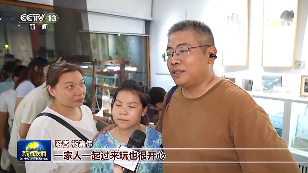 游客 杨嘉伟:恰逢国庆节和中秋节,一家人一起过来玩也很开心。接触一些非遗项目,对小孩子的教育还是非常有帮助的。