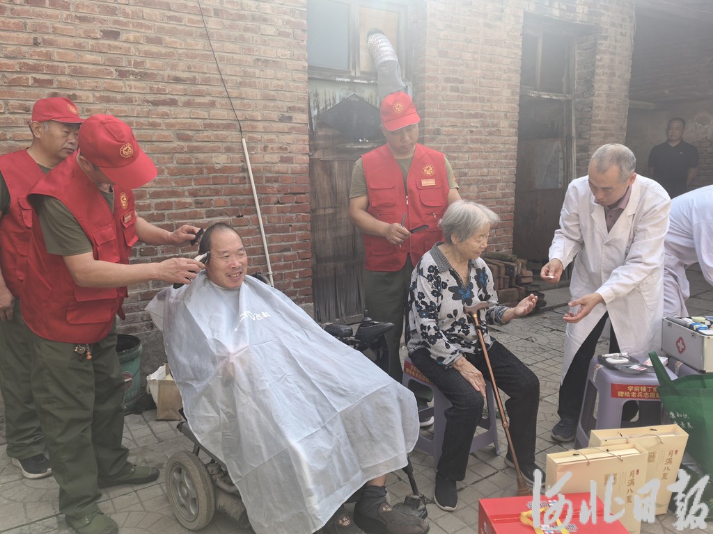 慰问队伍不仅为乡亲们送上月饼、牛奶、面包等慰问品,还开展了“一站式”贴心志愿服务。活动现场,志愿者们各展所长:理发师为行动不便的老人们理出了清爽利落的新发型,医务志愿者耐心细致地为老人测量血压、检查身体,志愿者们还把群众家中一把把用钝的剪子、菜刀打磨得锋利如新。这些看似平常的服务,对于生活困难的群众而言,却是实实在在的“及时雨”。