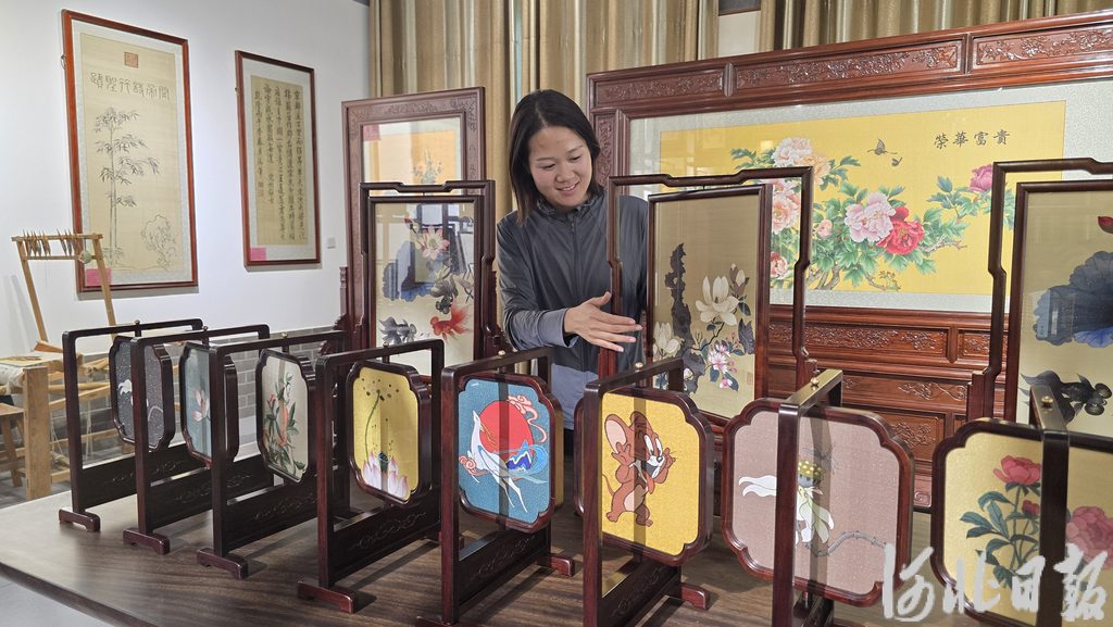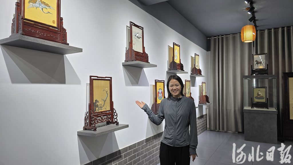 8月9日,郭飞在缂丝展览馆介绍缂丝传统作品。河北日报记者林凤斌摄