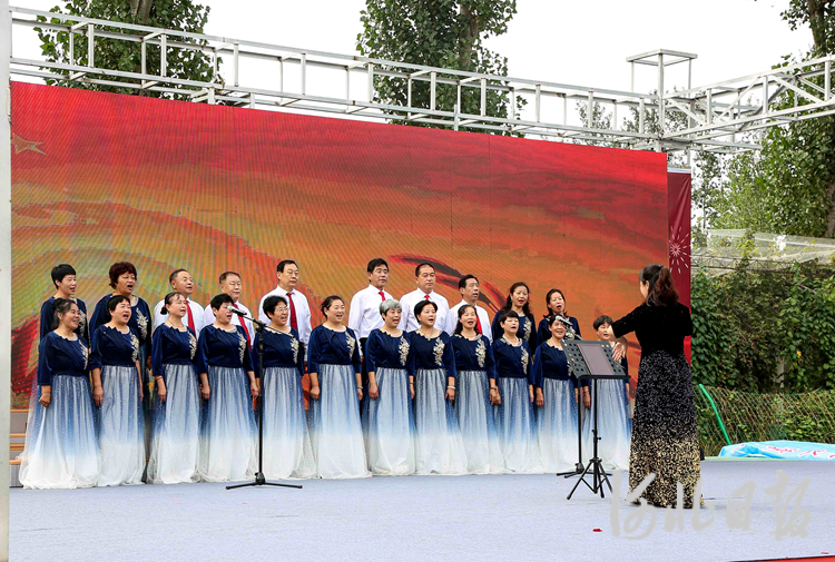 上午10时,伴随着赵兰庄战鼓队的昂扬鼓声,活动正式开始。舞台上,红色元素格外耀眼,舞蹈《红旗飘飘》10名舞者惊艳亮相;中年合唱团的《我的祖国》《映山红》《太行山上》,深情旋律唤起对革命先辈的缅怀与敬意。