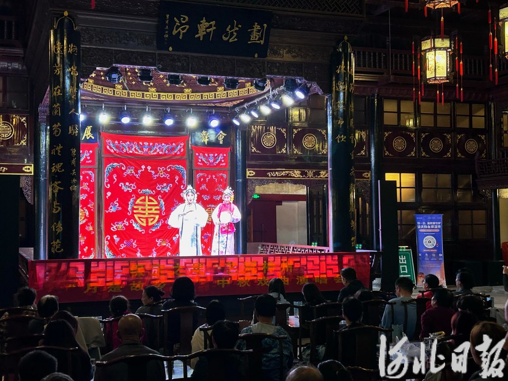 10月6日晚,在保定淮军公所博物馆的百年古戏楼内,中秋戏曲演唱会正在上演。河北日报见习记者李靖恬摄