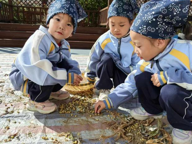 田埂间,孩子们变身“农耕小能手”:打豆子的“噼啪”声里,豆粒蹦跳落篮;挖红薯的孩子捧着果实欢呼“挖到宝藏啦”;豆腐坊中,研磨、点浆的身影透着认真,豆香萦绕鼻尖。