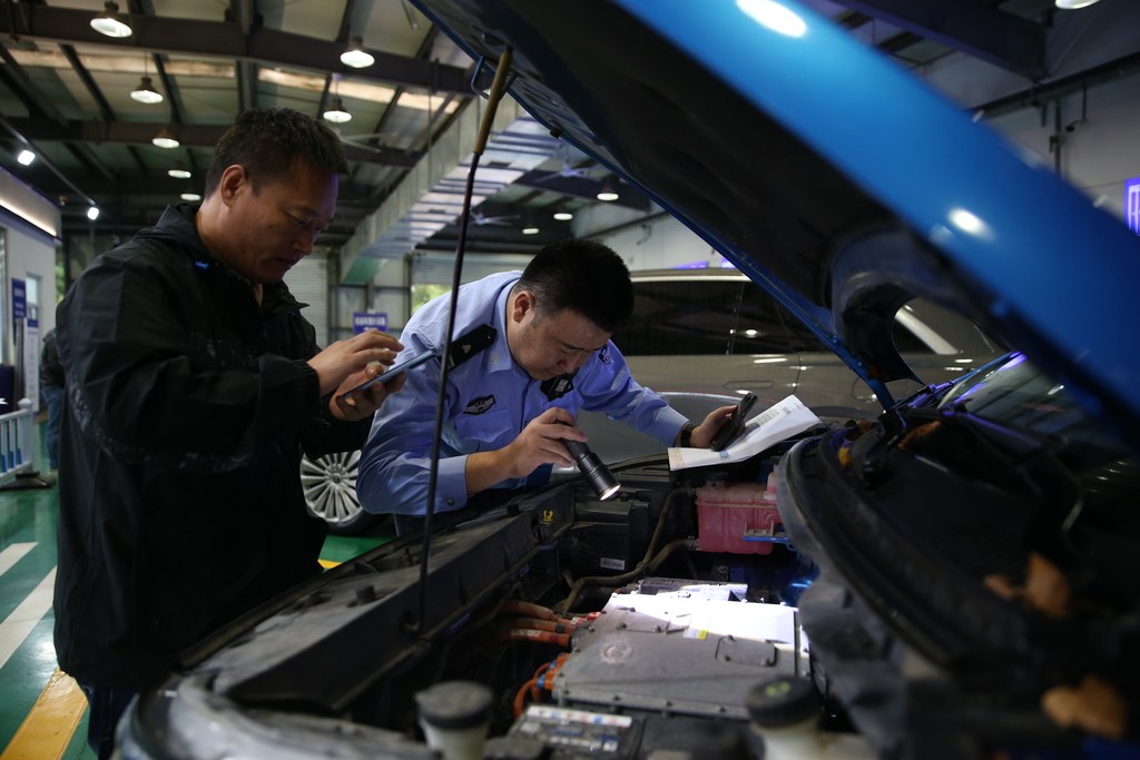 图为工作人员在查验车辆。 石家庄市公安局交通管理局车辆及驾驶人管理所供图