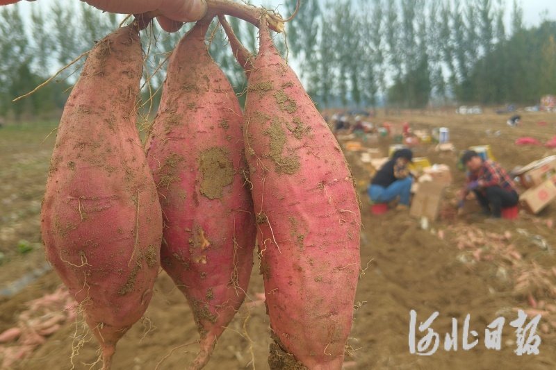 国庆佳节,河北省迁西县东荒峪镇贠庄村的田野里一片喜人景象,260亩红薯种植基地迎来了大丰收。村民们穿梭在田间地头,趁着晴好天气采收红薯,挑拣、装箱、运输,呈现出一派热火朝天的丰收景象。