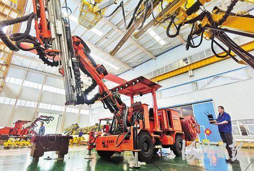 9月15日,河北宏远液压机械有限公司装配车间内,技术人员对智能掘进钻车进行出厂前的调试。陈正摄