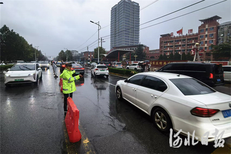河北日报客户端讯(赵振铎)10月8日,随着国庆中秋“双节”假期即将结束,降雨天气与返程车流、学子返校潮“三重叠加”,辖区校园周边及重点交通路段通行压力陡增,石家庄高新区交通管理大队提前研判交通态势,全员下沉一线,为返校学子筑牢平安出行防线。