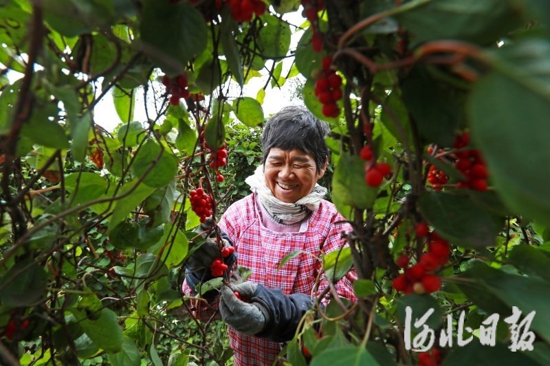 玉田县亮甲店镇孔五官屯村中药材种植基地五味子喜获丰收。